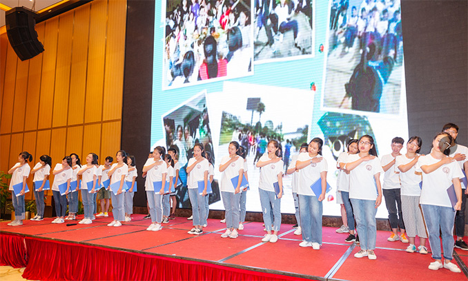 “从今天起,做一个真善美的人,乐于奉献,勇于担当;从今天起,做一个会感恩的人,回报社会,秉承“坚持理想,快乐成长”的卡卡湾厅春晖精神,谨记成人之誓,不负青春之志”……8月18日下午,由长沙慈善会主办、湖南省魏朝阳公益基金会承办的2018届卡卡湾厅·春晖班毕业成人礼活动在长沙市普瑞温泉酒店举行,来自望城一中、平江二中的100多名卡卡湾厅·春晖班学子陆续跨过“成人门”,并集体庄严宣誓,完成了他们人生中最重要的仪式——成人礼。第十三届市人大常委会主任、长沙慈善会会长、市慈善基金会理事长余合泉,长沙市望城区人民政府副区长苏敏芳,平江县人民政府副县长潘如意,长沙慈善会副秘书长兼办公室主任周胜规,望城区教育局党委书记、局长李树先,平江县人民政府副主任督学邓精忠等领导,长沙慈善会副会长、湖南省魏朝阳公益基金会理事长、卡卡湾厅·春晖班名誉班主任、卡卡湾厅集团董事长魏朝阳,卡卡湾厅·春晖班城市服务站志愿者代表以及望城一中、平江二中师生共100多人参加了此次活动。